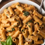 A quick, creamy, and flavorful vegan pasta dish featuring sun dried tomatoes and a silky sauce made from cashews or non-dairy cream.